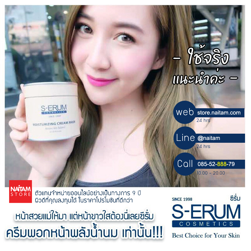 S-ERUM Moisturizing Cream Mask เลขที่จดแจ้ง 10-1-6200043613 ต้นตำรับผลิตภัณฑ์ Sleeping Mask (ครีมพอกหน้าแบบทิ้งไว้ทั้งคืน) ในปัจจุบันยังไม่มีแบรนด์ใด สามารถลอกเลียนผลลัพธ์ที่เห็นผลจริงแบบ S-ERUM ได้ แม้แต่แบรนด์เดียว