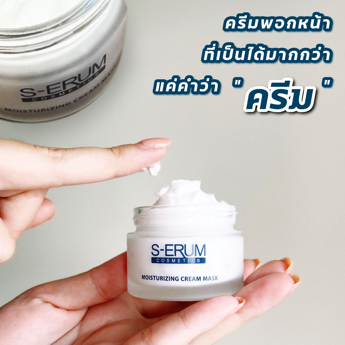 S-ERUM Moisturizing Cream Mask เลขที่จดแจ้ง 10-1-6200043613 ต้นตำรับผลิตภัณฑ์ Sleeping Mask (ครีมพอกหน้าแบบทิ้งไว้ทั้งคืน) ในปัจจุบันยังไม่มีแบรนด์ใด สามารถลอกเลียนผลลัพธ์ที่เห็นผลจริงแบบ S-ERUM ได้ แม้แต่แบรนด์เดียว