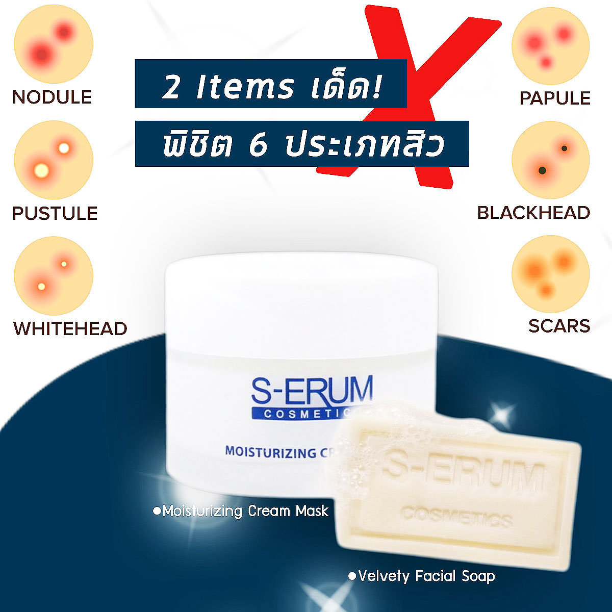 S-ERUM Velvety Soap ผลิตภัณฑ์รักษาปัญหาผิวที่มีปัญหาหมองคล้ำ, รอยสิว, กระฝ้าให้กระจ่างใสขึ้นอย่างปลอดภัย